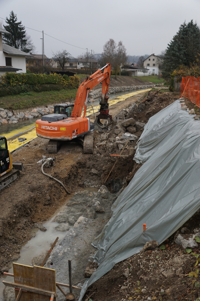 Rénovation de berges en assec sur le Mali Graben – 150 m de batardeaux souples en courant parallèle (Ljubljana)