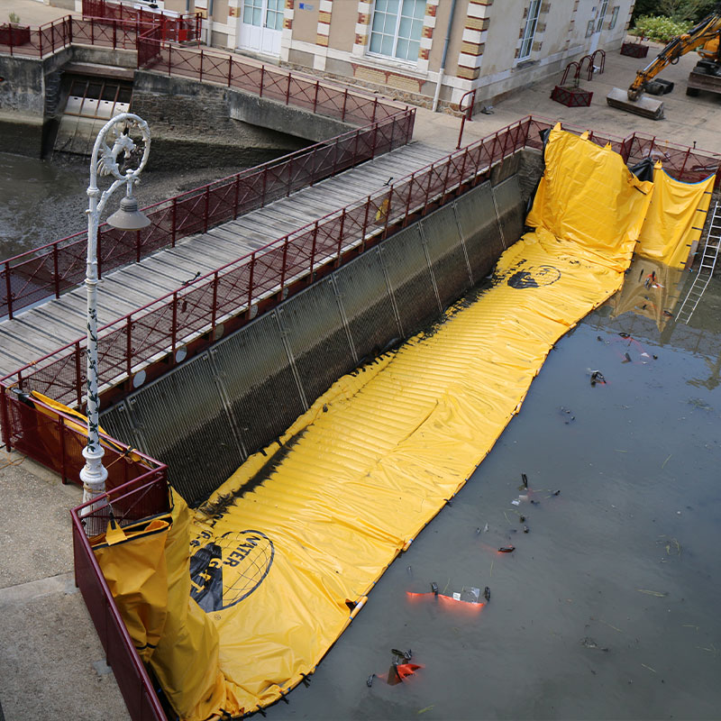 If the speed of the current is high, it is recommended to restrict the flow in the arm of the river as much as possible to ease the installation (winnowing, wooden planks, big-bags).